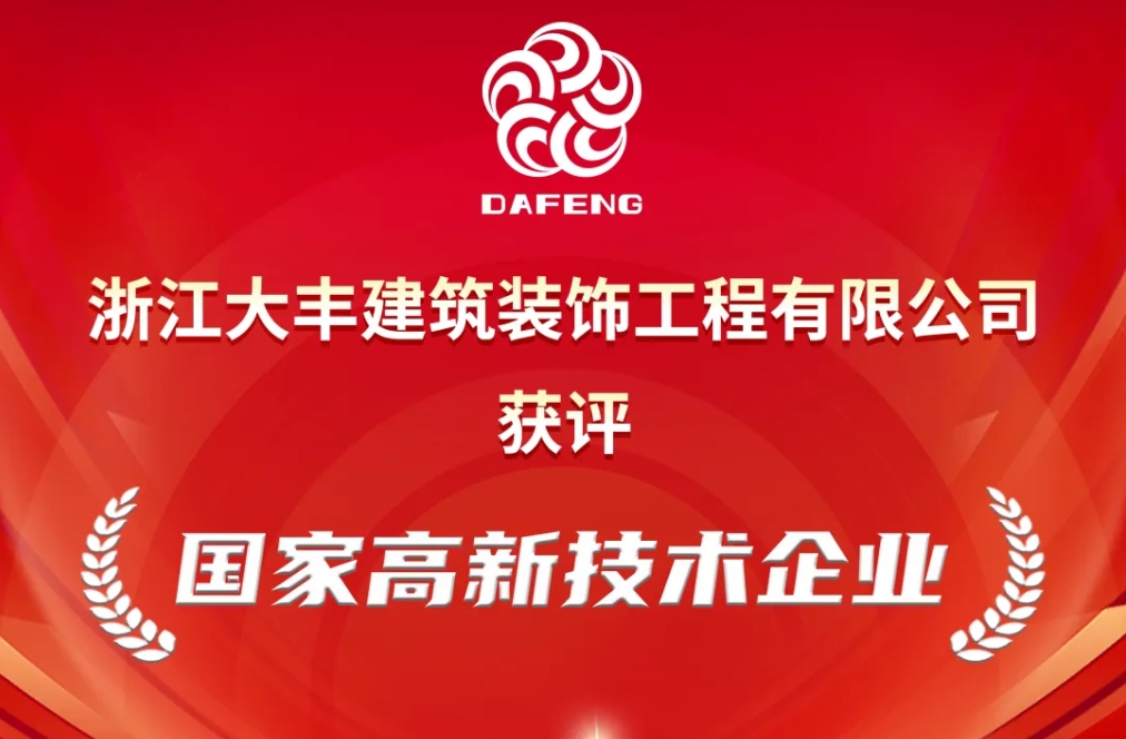 Zhejiang Dafeng Building Decoration Engineering Co., Ltd. Officially Awarded National High-Tech Enterprise Status